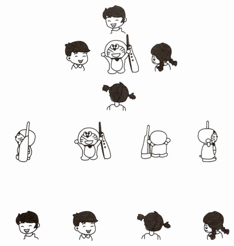 1. 下面的四幅图分别是谁看到的?连一连。