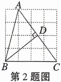 2. 如图,$\triangle ABC的顶点A,B,C$在边长为1的正方形网格的格点上,$BD⊥AC于点D$,则$BD$的长为