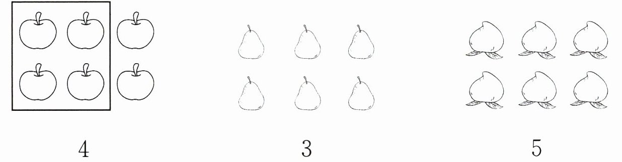 第一个图:圈出4个苹果(已图示,四个苹果被框起,数字4在下方)。