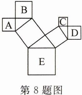 8. 如图所示的是一株美丽的勾股树,其中所有的四边形都是正方形,所有的三角形都是直角三角形。若正方形A,B,C,D的面积分别是4,6,2,4,则正方形E的面积是(