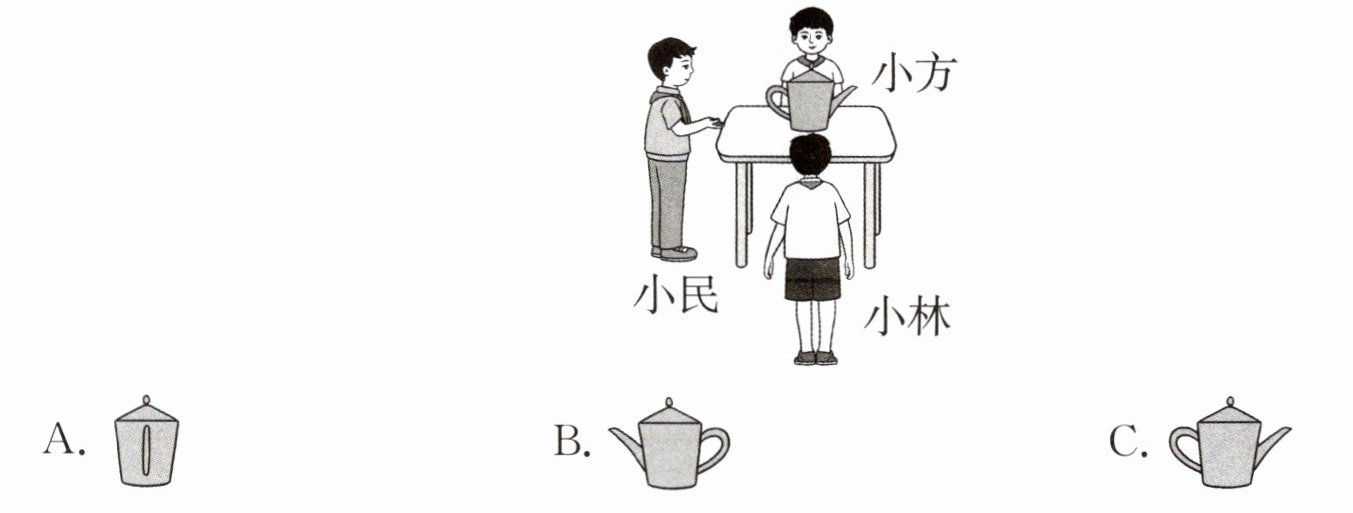 3. 下面图( )是小方看到的。