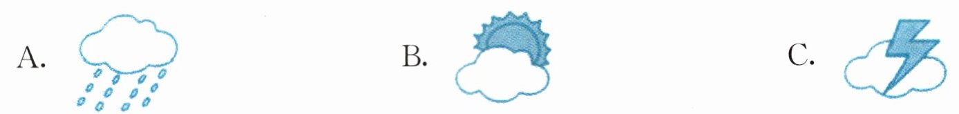4. 学校准备第二天去秋游,宁宁担心由于天气原因去不了。他晚上看到天气预报时很高兴。他看到的天气符号是( )。