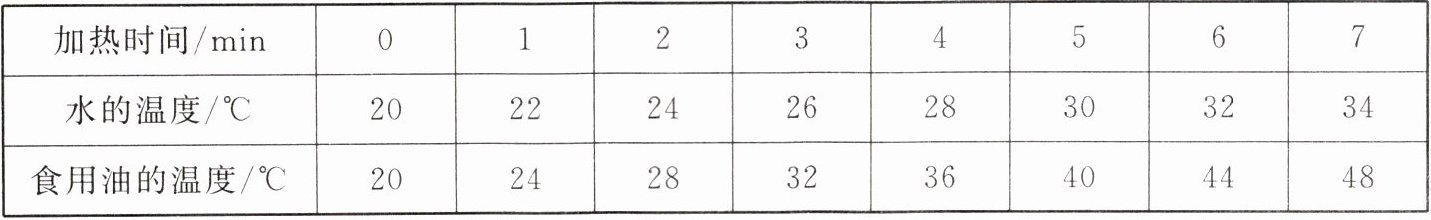 的吸热能力更强。|加热时间/min|0|1|2|3|4|5|6|7|
