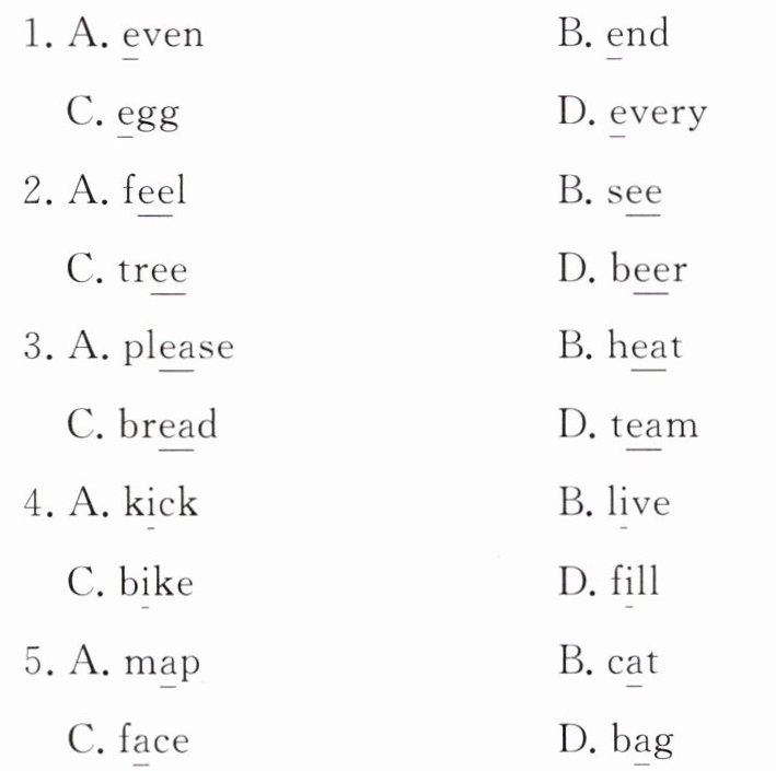 Ⅳ.选出下列每组单词中画线字母或字母组合发音不同的一项。