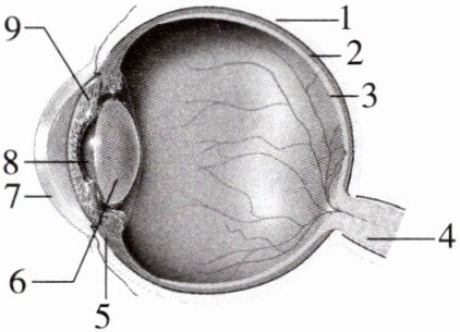 巩膜 脉络膜 营养 视网膜 视神经 晶状体 晶状体 折射光 角膜 折射 瞳孔 虹膜 8 瞳孔 角膜 巩膜 虹膜 视网膜 晶状体