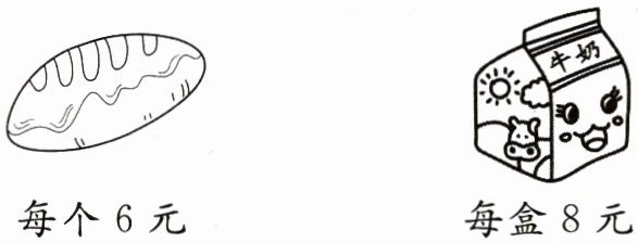 3. 明明买了 4 个面包和 1 盒牛奶,需付多少元?