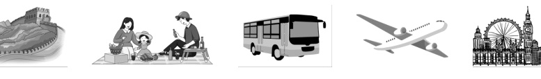 三、同学们正在分享各自假期中拍下的照片。请给下列句子或对话选择对应的照片。