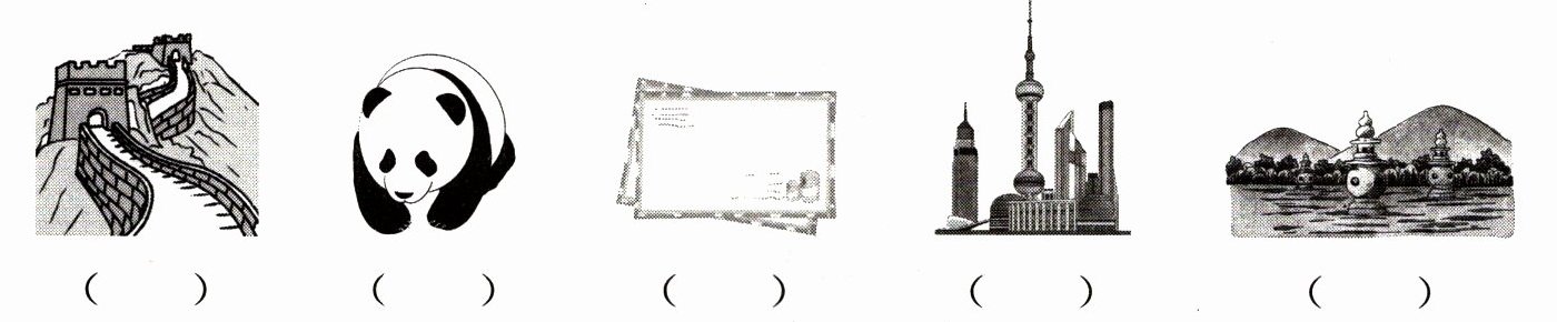 一、一群外国小朋友来中国旅游,他们可开心啦!听句子,用数字1—5给下列图片排序。