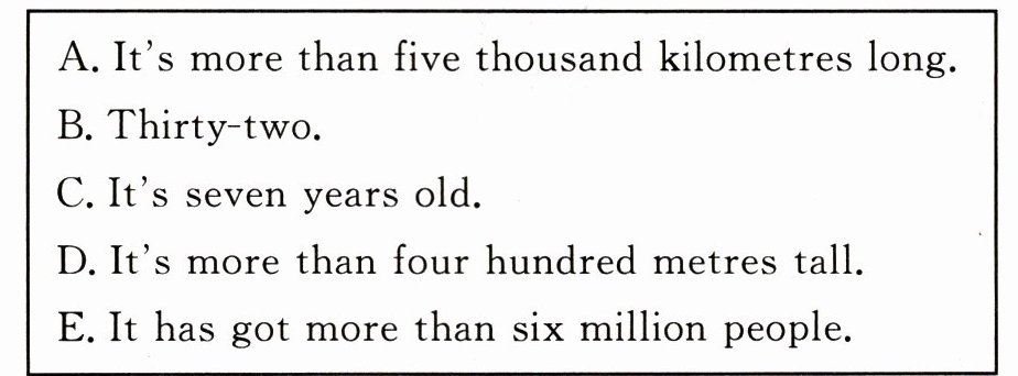 ) people.4. The Changjiang River is more than six thousand________ (kilometre