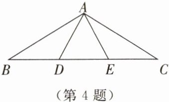4.如图所示,在△ABC中,点D,E在线段BC上,AB= AC,AD= BD= AE= EC= DE.找出图中的等腰三角形和等边三角形.