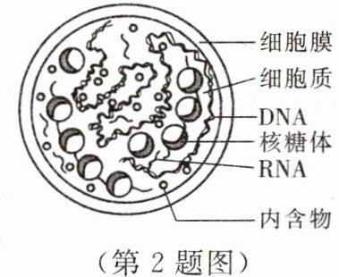 2. 支原体肺炎是一种常见的传染病,患者主要有两种症状:发热和咳嗽。肺炎的种类还有细菌性肺炎、病毒性肺炎。下图为支原体的结构模式图,下列有关叙述正确的是( )