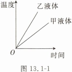 3. 两个相同的容器分别装了质量相同的两种液体,用同一热源分别加热,液体温度与加热时间的关系如图13.1-1所示。根据图线可知(