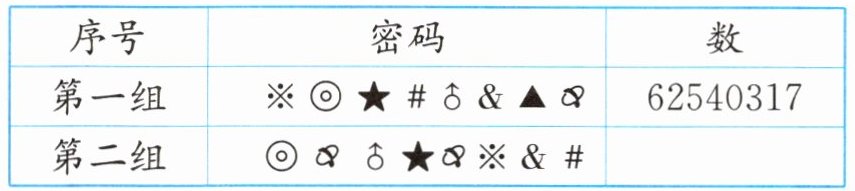 根据下表第一组密码所表示的数把第二组密码所表示的数破译出来,并在下图计数器上画出对应的算珠。