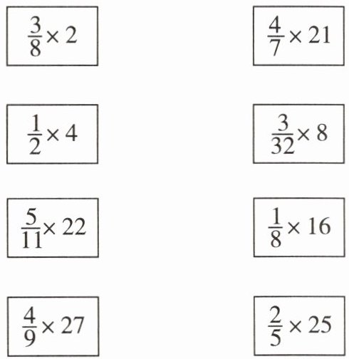 $\frac{3}{8}×2$-$\frac{3}{32}×8$,$\frac{1}{2}×4$-$\frac{1}{8}×16$,$\frac{5}{11}×22$-$\frac{2}{5}×25$,$\frac{4}{9}×27$-$\frac{4}{7}×21$