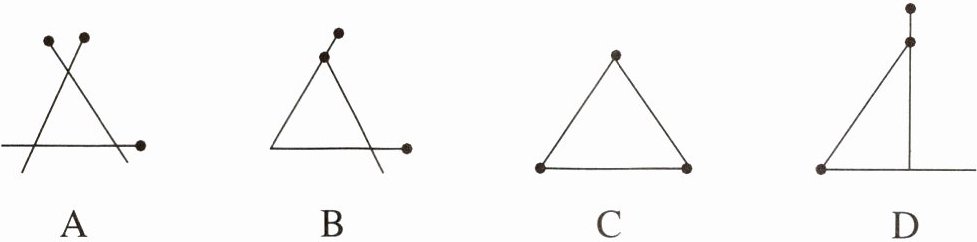 下面是小明用三根火柴组成的图形,其中符合三角形概念的是(