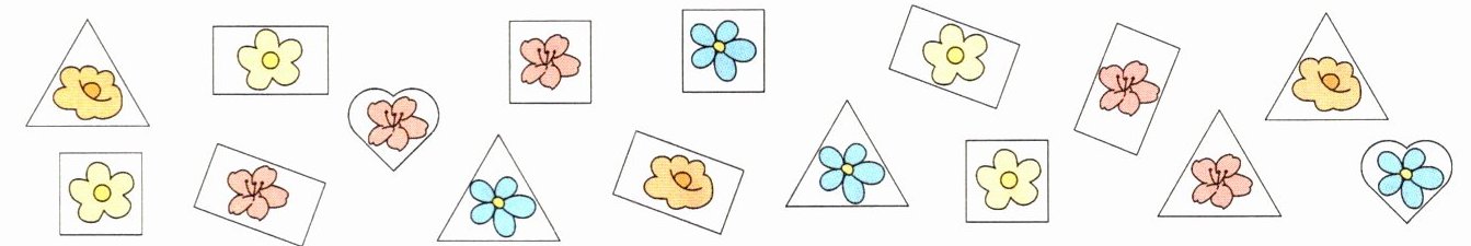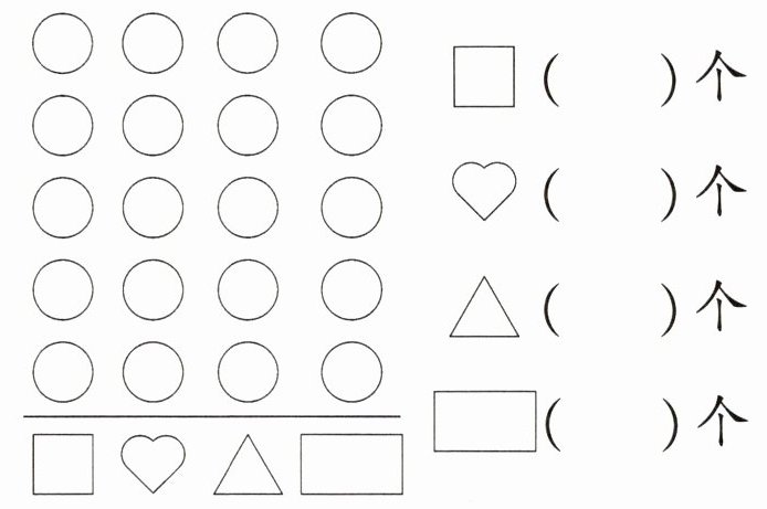 (2) 按卡片的形状分一分,再涂一涂、填一填。