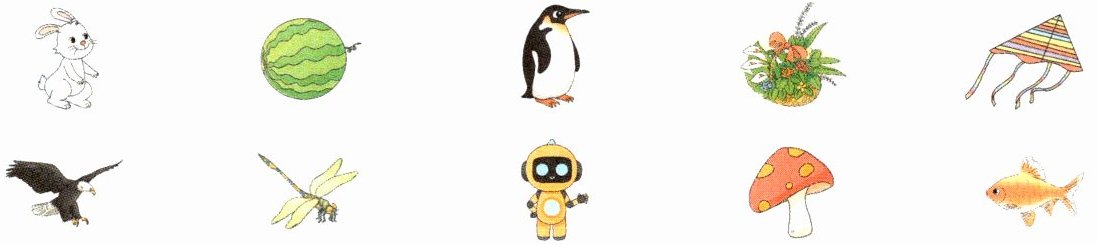 【解析】:圈出图中的兔子、企鹅、鹰、蜻蜓、金鱼,数出共5只动物。