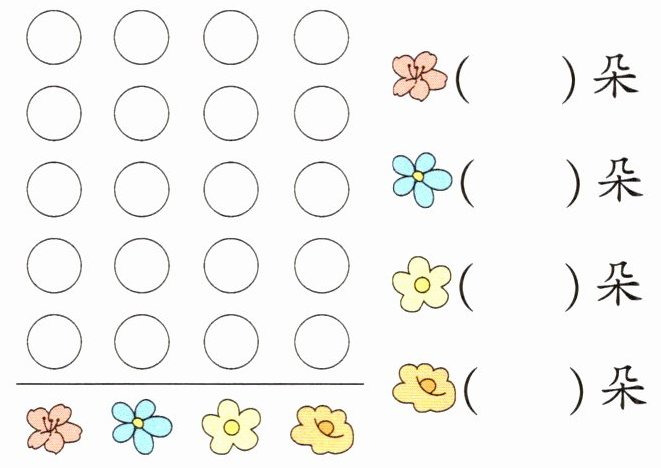 (1) 按花的种类分一分,再涂一涂、填一填。