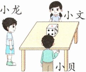 (1)右边的骰子中,相对两个面上的点子数之和是7。小贝看到的点子数是(