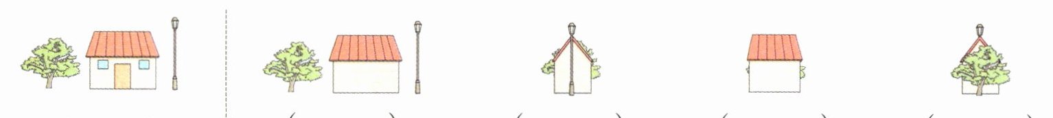 5. 下面右边的哪些照片拍的也是小花家的房子?在对应的括号里画“√”。