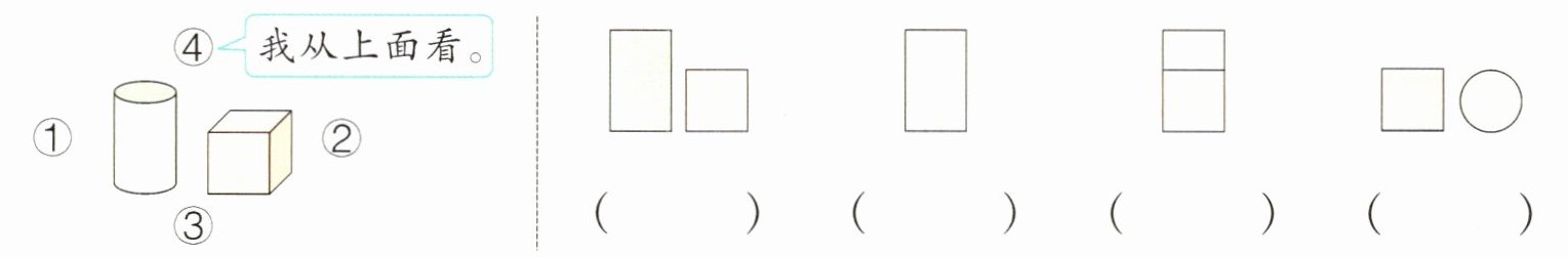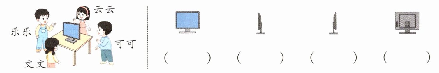 4. 下面右边的四幅图分别是从哪个位置看到的?(填序号)
