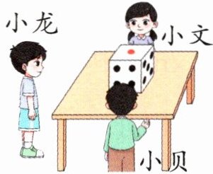 2. 右边的骰子中,相对两个面上的点数之和是7。小贝看到的点数是(