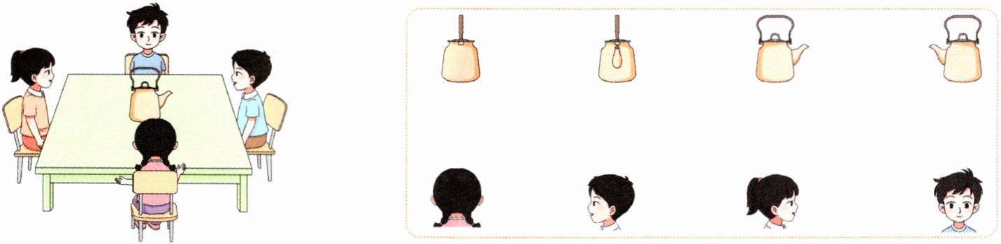 1. (广州真题)下面右边的四幅图分别是谁看到的?连一连。