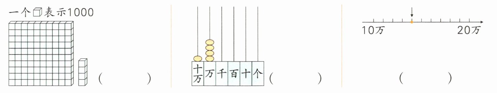 3. (数形结合)元元用下面的方法表示140000,哪种方法是对的?在括号里画“√”。