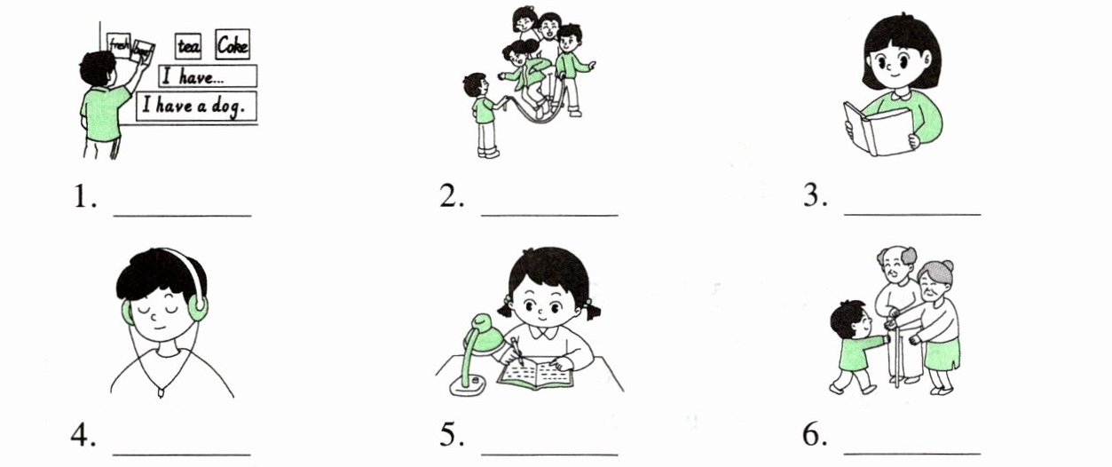 二、对号入座,从方框中选出与图片相对应的短语。(只填选项)
