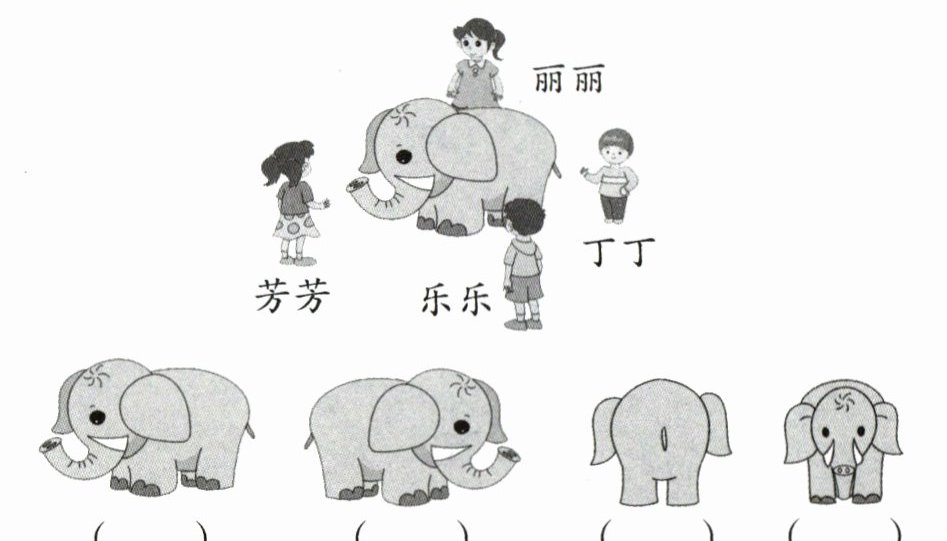 三、四个小朋友看一头大象,下面 4 幅图分别是谁看到的?(12 分)