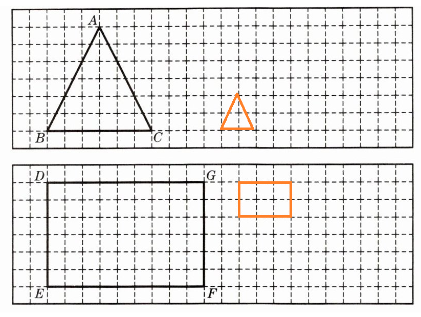 1. 在下列方格图中,分别画出一个与△ABC、四边形 DEFG 相似的图形.