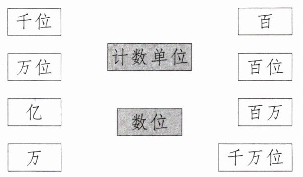 数位连接千位、万位、百位、千万位;计数单位连接百、万、百万、亿。