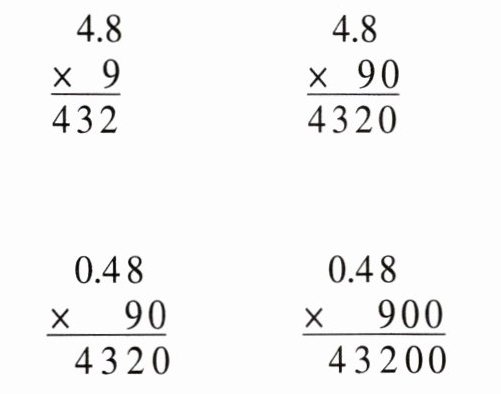 答案: 1.48×6=8.88 0.148×6=0.888 1480×6=8880