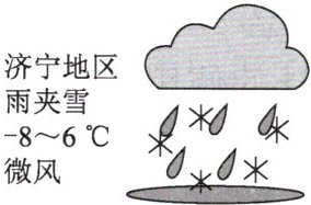 2. 如图是济宁市某日天气预报的信息图。图中关于气温的读法正确的是(