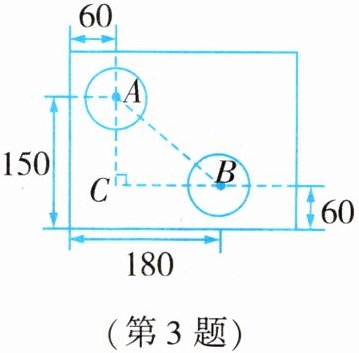 3. 如图所示的是一个外轮廓为长方形的机器零件的平面示意图,根据图中的尺寸(单位:$mm$),计算两圆孔中心$A$和$B$之间的距离为
