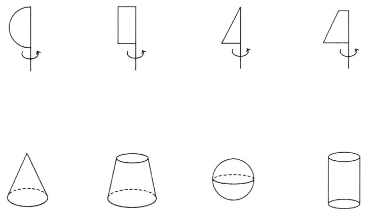 下面的立体图形是由怎样的平面图形旋转一周而形成的?请画出平面图形。