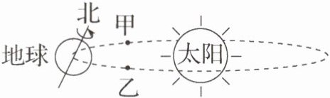 7. 如图所示为地球绕太阳运行的公转轨道示意图,图中箭头为地球自转方向,甲、乙为轨道上的两处位置。下列有关此时北半球的季节与地球公转方向的叙述,正确的是()