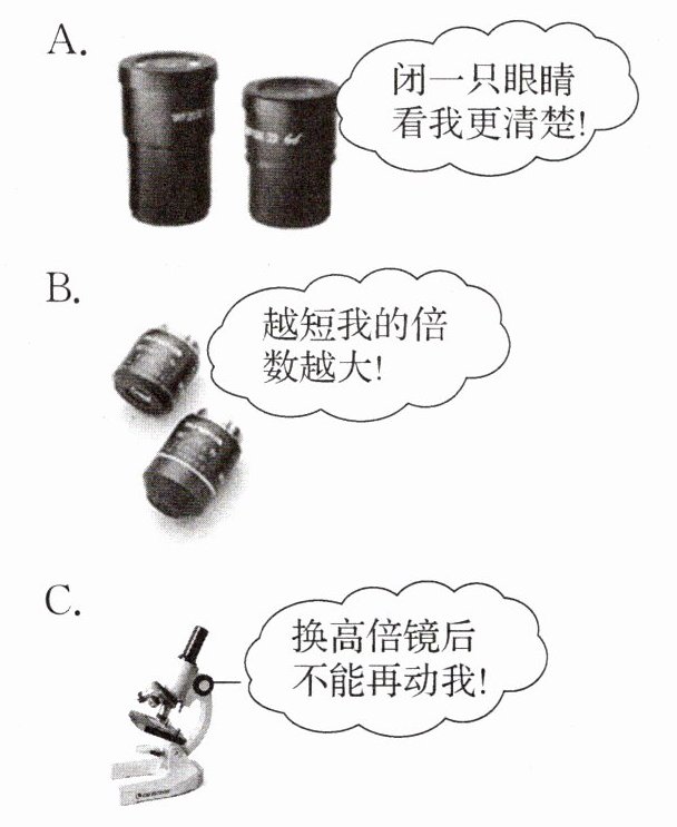 3. 显微镜是一种常用的观察工具。下列关于目镜、物镜、反光镜、粗准焦螺旋的自述正确的是()