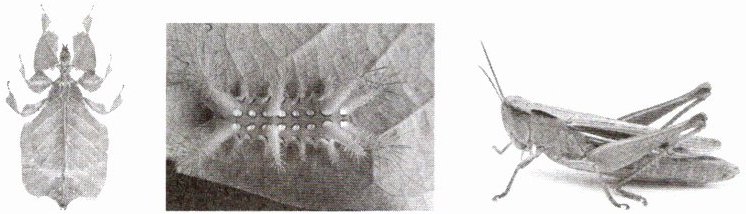 5. 湿地生物可利用自身的体型和体色来逃避敌害和协助捕食。如形似树叶的叶螽、带有毒毛色彩鲜艳的洋辣子、绿色的蝗虫,这三种适应现象依次属于()