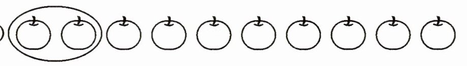 - (1)一共有$(10)$个 ,每$(2)$个一份,可以分成$(5)$份。算式:$10\div2 = 5$