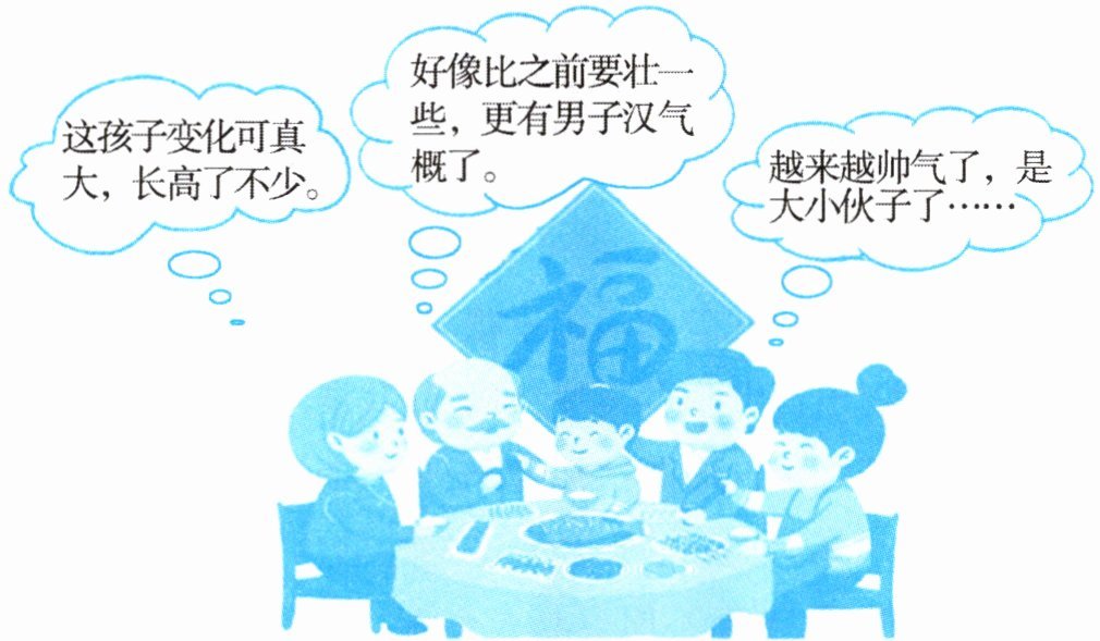 (1) 示例:我长高了,声音变粗了,肩膀变宽了等。