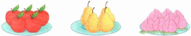 2. 下面三盘水果,有两盘是小明的,小明最少有多少个水果?最多有多少个水果?