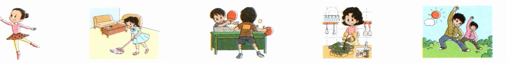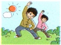 1. 解析 图为做早操,英文表达为“do morning exercises”。