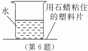 6. 某同学往如图所示的烧杯(用石蜡将烧杯和塑料片粘在一起)中加入一种固体物质,搅拌后,发现石蜡熔化,塑料片掉了下来。该同学加入的物质可能是()。
