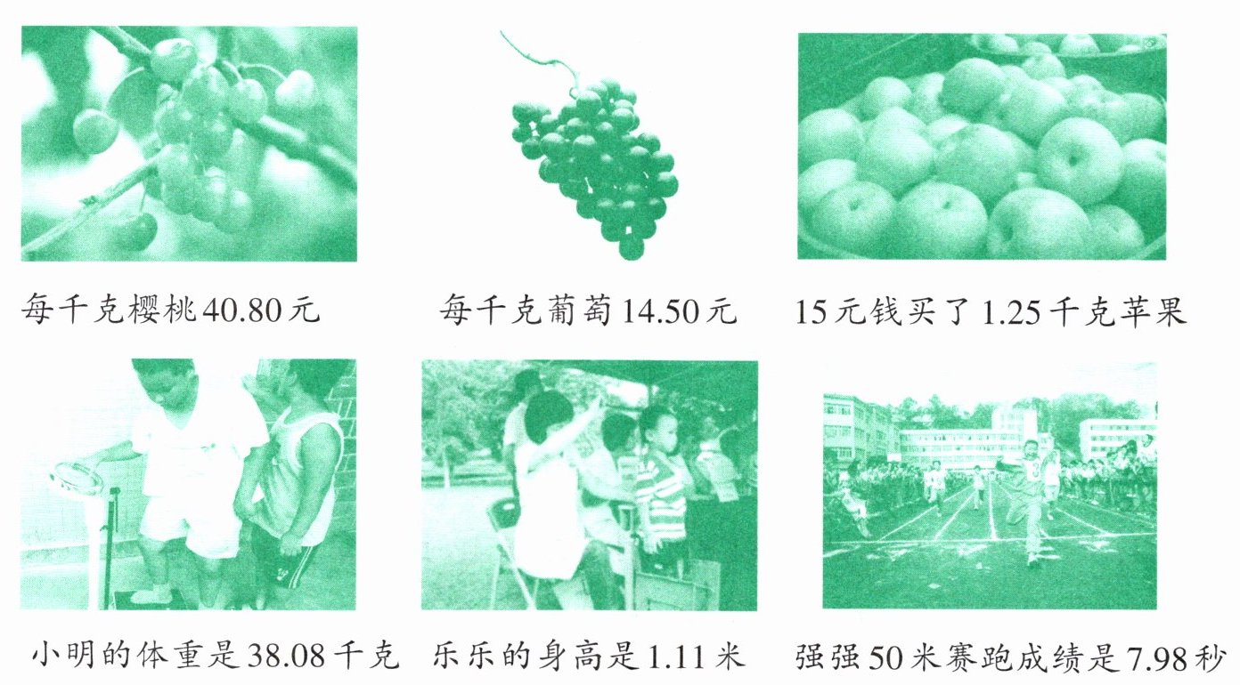 【解析】:生活中的小数有很多,比如:一瓶饮料的容量是$1.5$升;一支铅笔的价格是$0.5$元;小红的体温是$36.5^{\circ}C$等。