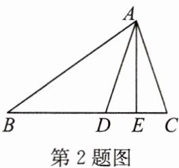 2. 如图,△ABC 中,点 D 在 BC 边上,BD= AD= AC,E 为 CD 的中点. 若∠CAE= 16°,则∠B 为