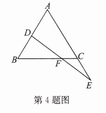 4. 如图,E 在△ABC 的边 AC 的延长线上,D 点在 AB 边上,DE 交 BC 于点 F,DF= EF,BD= CE. 求证:△ABC 是等腰三角形.