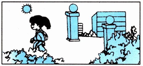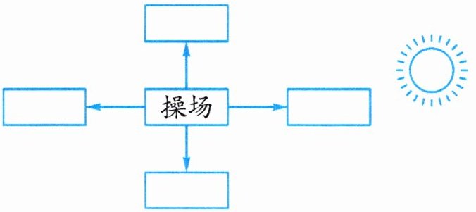 (1)中午的太阳在南边,下图是中午12点时的操场,请在$□$
