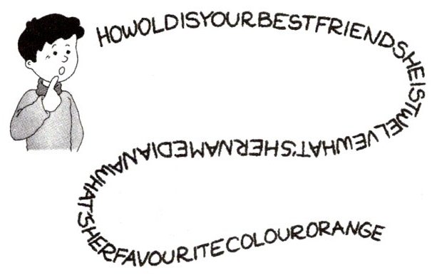 找一找字母链中的句子,并将它们以对话的形式写在下面的横线上。注意正确使用标点符号哟!