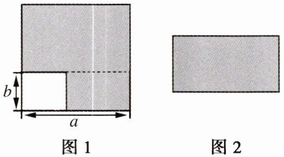 3. 在边长为$a的正方形纸片中剪去一个边长为b$的小正方形(如图1),把余下的部分沿虚线剪开,拼成一个长方形(如图2),分别计算这两个图形阴影部分的面积,可以验证的乘法公式是____.(用字母表示)